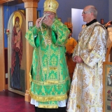 Concelebrating with the Archbishop were the Rector of the Holy Resurrection Father Leonard Herrem, Archpriest Daniel Guenther and Father Florin along with Deacon John from Saint Vincent of Lerins Orthodox Church Saskatoon.