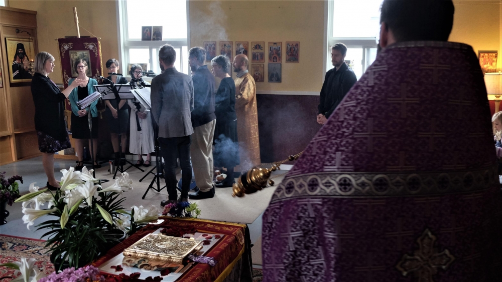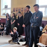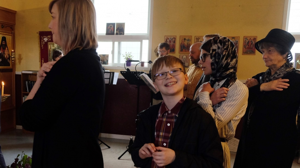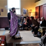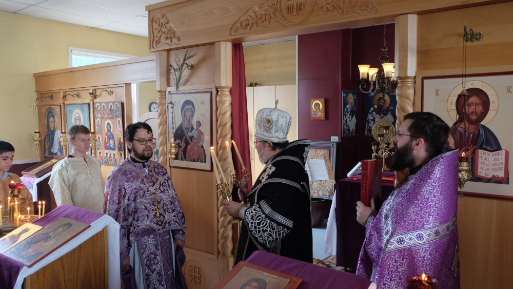 His Eminence was greeted by Parish Council President Andrew Janzen, and by the Parish Priest, Father Matthew Francis. Archpriest Richard Rene, a local prison chaplain, also served. Church singing was led by Matushka Krista Francis.