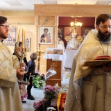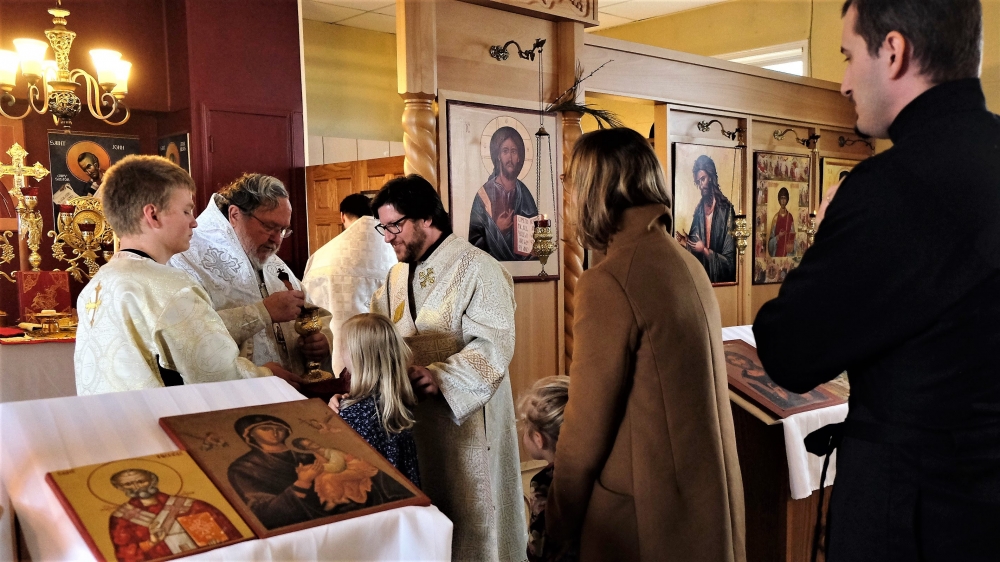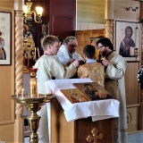 Vladyka Irénée distributed Holy Communion to the faithful. At the conclusion of the Liturgy, His Eminence offered words of spiritual encouragement to the Holy Apostles Mission community.