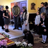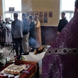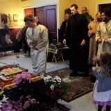 Following the veneration of the Holy Shroud, the traditional repast of bread and dried fruit was blessed, and the faithful had the opportunity to visit with their Archpastor, Vladyka Irénée.