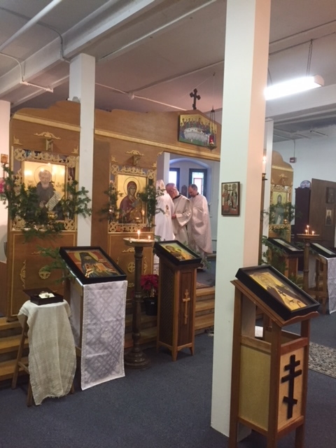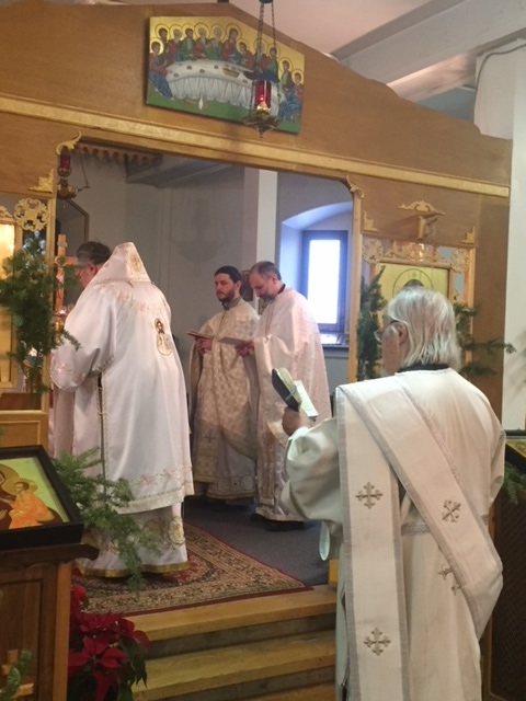 Photos of the Liturgy on Christmas Day at Paroisse Saint-Benoît-de-Nursie in Montréal. Concelebrating with His Eminence, Archbishop Irénée, were Fr Dragos Giulea, Fr Andrei Syrkin, Fr Dimitri Choueiri, Fr Mykola Andriienko and Archdeacon Amvrosi.