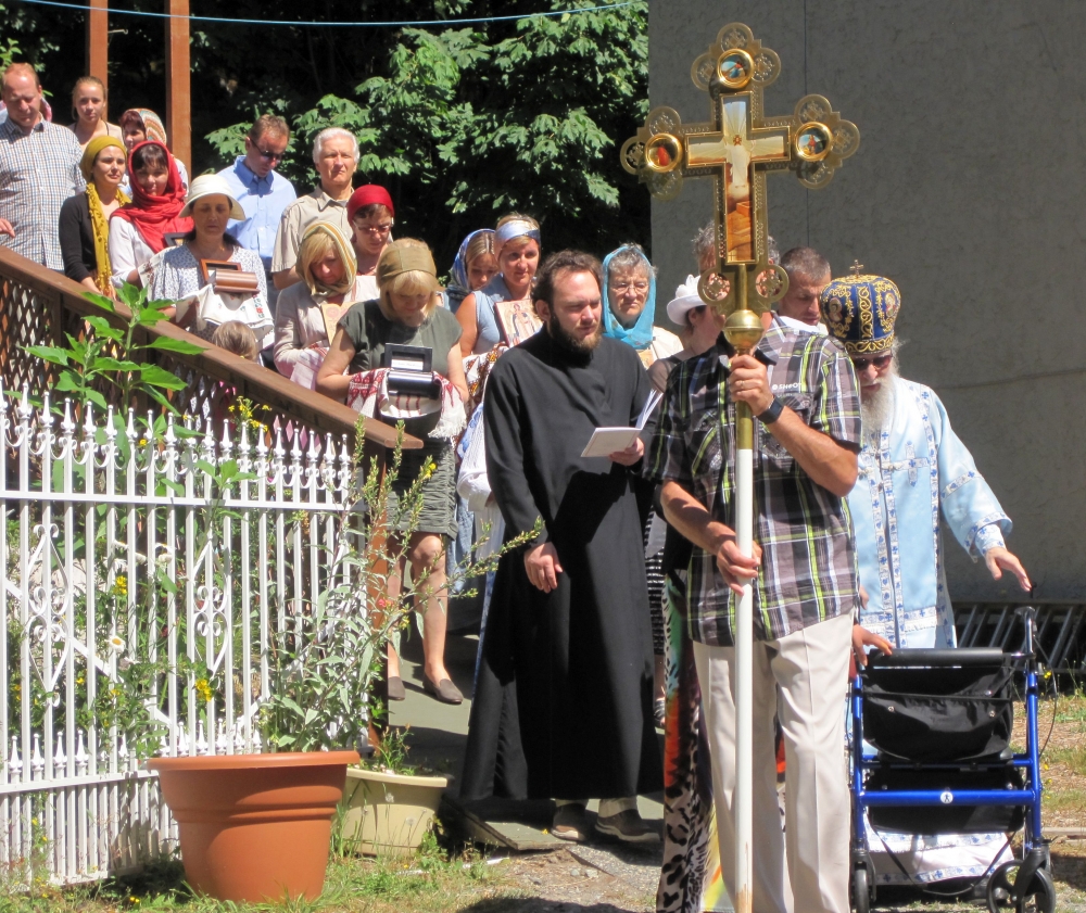 There is usually little to worry about except midsummer heat that can bear down upon us. This year was no exception and, after the Divine Liturgy, a procession began with the monastery's Russian bells, donated to us by our dear friends in Florida, ringing melodiously. Because of the heat, many of the older people and those with small children did not participate in the procession.
