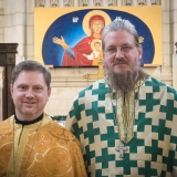 Fr John concelebrated Mattins and Divine Liturgy with the mission's rector, Fr Geoffrey Ready, and delivered the homily, before enjoying fellowship following the Liturgy with the faithful of the mission.