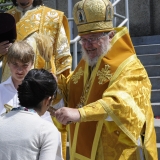 My two boys (14 and 10) both served at the altar and both commented on how much they enjoyed serving with the clergy present. My younger son expressed the joy he got from being a part of something BIG, he had important jobs to do in front of many. (He had only served a few times in a small hermitage prior to this.) My older son, at the age when going to church is "not cool" stood with reverence and he too felt a part of something Holy. His smile showed his admiration for the people he was serving with, his words confirmed it afterwards. He particularly enjoyed being soaked with water by Bishop Irénée when he was blessing the church.