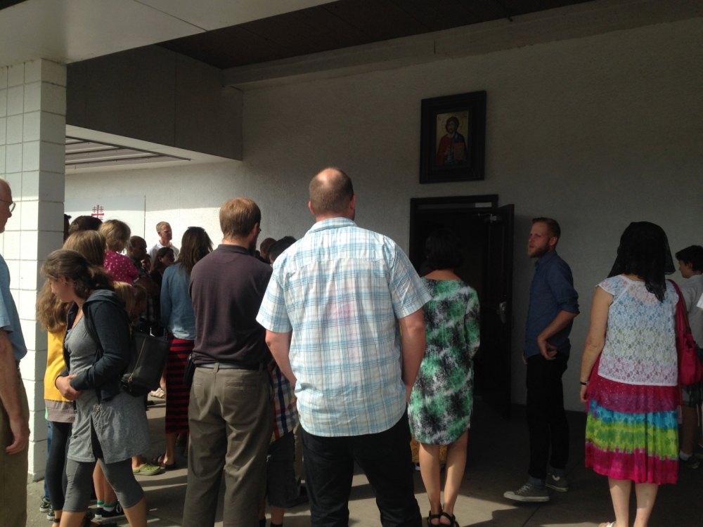 The first Sunday after the icon’s installation, following the Divine Liturgy, a blessing was served. It is our prayer that this icon of our Lord, God, and Saviour, Jesus Christ, will be a sign and witness to all – especially to those who walk by this door in Chilliwack – of the love of God incarnate.