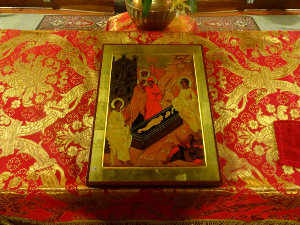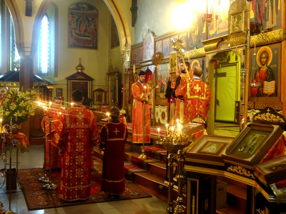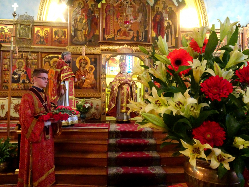 This Sunday Saints Peter and Saint Paul Sobor in Montréal was filled with a very lighthearted and joyful ambiance: red festive vestments of the priests, plenty of flowers, bright sunlight making its way through the stained-glass windows, everything glorified the heroic deeds of the Myrrhbearing Women.