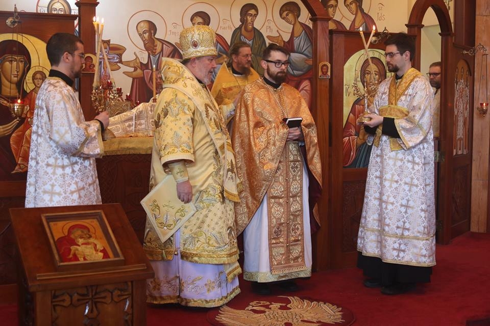His Eminence Archbishop Irénée celebrated the Divine Liturgy in the Three Hierarchs Chapel at St. Vladimir's Seminary this past Sunday (28 February) during which he ordained Deacon Tikhon (Ryan) Bishop to the Holy Priesthood. The newly ordained Fr. Tikhon will be returning to serve in Canada later this year. Please click on the images below to view the photo gallery.
