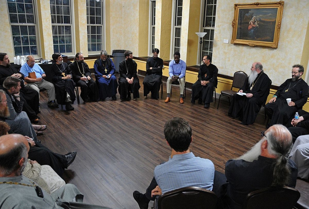 His Beatitude, Metropolitan Tikhon led Wednesday’s discussions, while His Eminence, Archbishop Michael led Tuesday’s presentation. Other clergy seasoned in the mission field presented a series of talks, evaluations and round table discussions. Among them were Archpriest John Jillions, OCA Chancellor; Archpriest Steven Voytovich, Dean of Saint Tikhon Seminary; Archpriest Chad Hatfield, President of Saint Vladimir’s Seminary; Archpriest David Rucker of Saint Herman Seminaryand OCMC; Archpriest John Parker, Chair of the Department of Evangelization; Archpriest Timothy Hojnicki, Rector of Holy Apostles Church, Mechanicsburg, PA; Archpriest Tomas Soroka, Rector of Saint Nicholas Church, McKees Rock, PA; Archdeacon Joseph Matusiak, Secretary to the Metropolitan and Chair of the Stewards of the Orthodox Church in America; and Matushka Jennifer Mosher, Saints Peter and Paul Church, Meridan, CT.