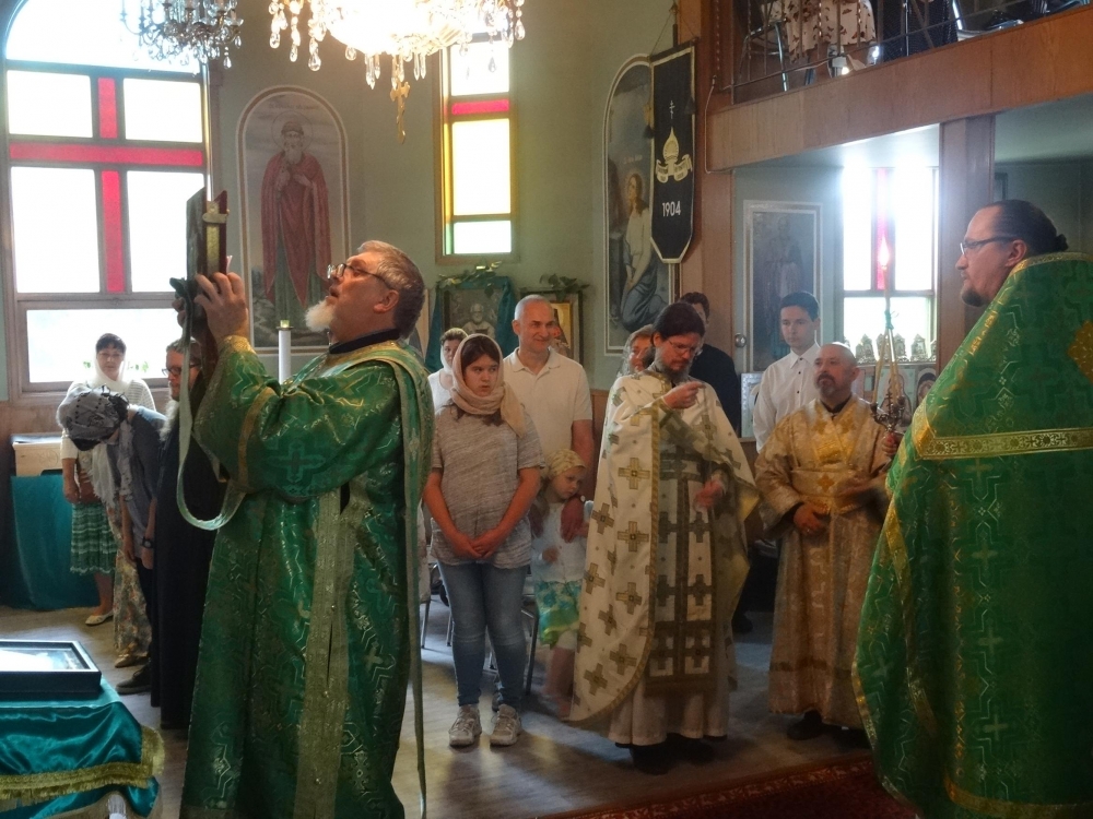 L’hiver dernier, la paroisse de la Sainte-Trinité et la Mission Théotokos-Fontaine-de-Vie ont amorcé le processus de fusion, conservant deux traditions liturgiques différentes (anglaise et slave) tout en existant comme paroisse unique (Sainte-Trinité). Ce processus a incarné la vision de saint Tikhon, qui voyait non pas l’Orthodoxie comme un vestige du vieux monde ni un rite ancien advenant étrangement dans un nouveau monde mais bien plutôt la « foi transmise aux saints une fois pour toutes » (Jude 3), et a apporté la stabilité à la communauté anglaise, ainsi qu’une présence pastorale élargie à la communauté slave. La présence de Vladika à l’occasion de cette première fête pour la nouvelle communauté a constitué un témoignage quant à l’unité de notre foi, telle que donnée lors de la première Pentecôte. Ce témoignage n’a pas échappé aux personnes présentes. Durant la Liturgie, le Père Roman Pavlov (recteur de la paroisse de la Sainte-Trinité) a reçu la croix en or pour son temps de service à l’Archidiocèse et les efforts qu’il a déployés en vue de faciliter cette fusion bénie. Axios!