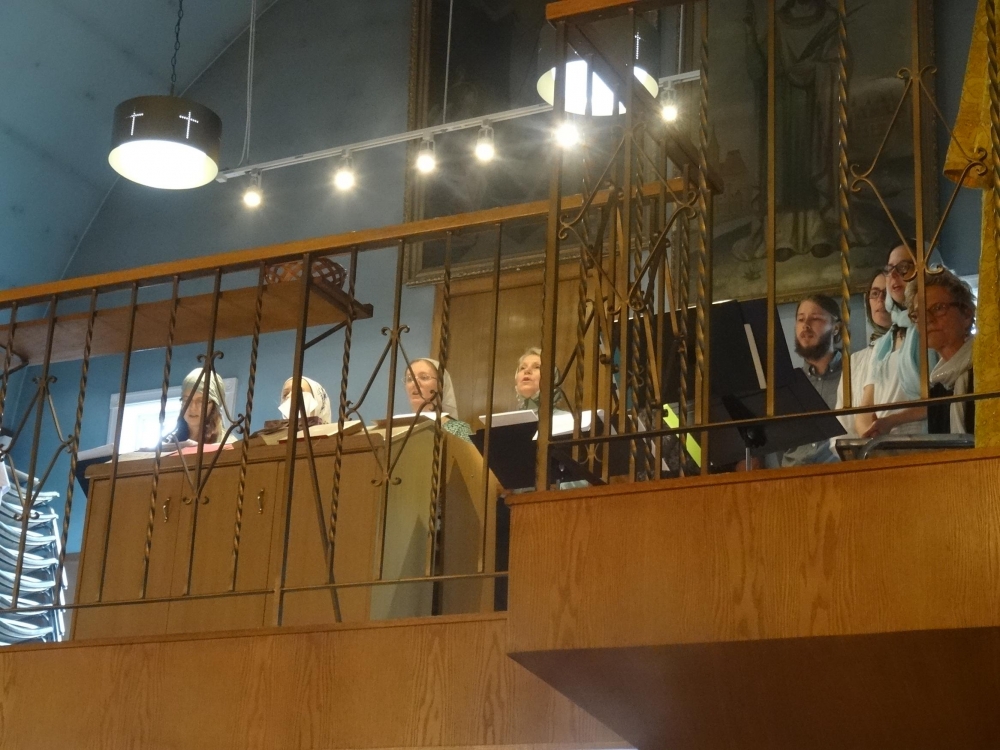 Plus tard ce jour-là, Vladika (en compagnie du Père Matthew Beynon de l’église Sobor de la Saint-Trinité et du Père diacre Nicolas Svetlovsky) s’est rendu à Winkler pour prendre part aux Vêpres à la Station missionnaire Christ-Sauveur. La communauté de Winkler est une Mission de l’église Saint-Nicolas de Narol et n’a cessé de se développer depuis qu’elle a reçu la bénédiction de tenir des services liturgiques mensuels. C’est dans une petite chapelle décorée pour la fête de Pentecôte que le Père Gregory Scratch (recteur de la paroisse Saint-Nicolas de Narol) a célébré les Grandes Vêpres. Dans son sermon, Vladika a souligné que l’établissement d’une telle communauté n’a pu être que l’œuvre du Saint Esprit et que son développement ultérieur requiert le travail de ses membres actualisant dans leur vie les dons du Saint Esprit. Après la célébration, un festin mennonite traditionnel avait été épour Vladika qui, au cours du repas, a parlé de la vie de l’Archidiocèse et des nombreuses communautés missionnaires ayant pris naissance ces dernières années.