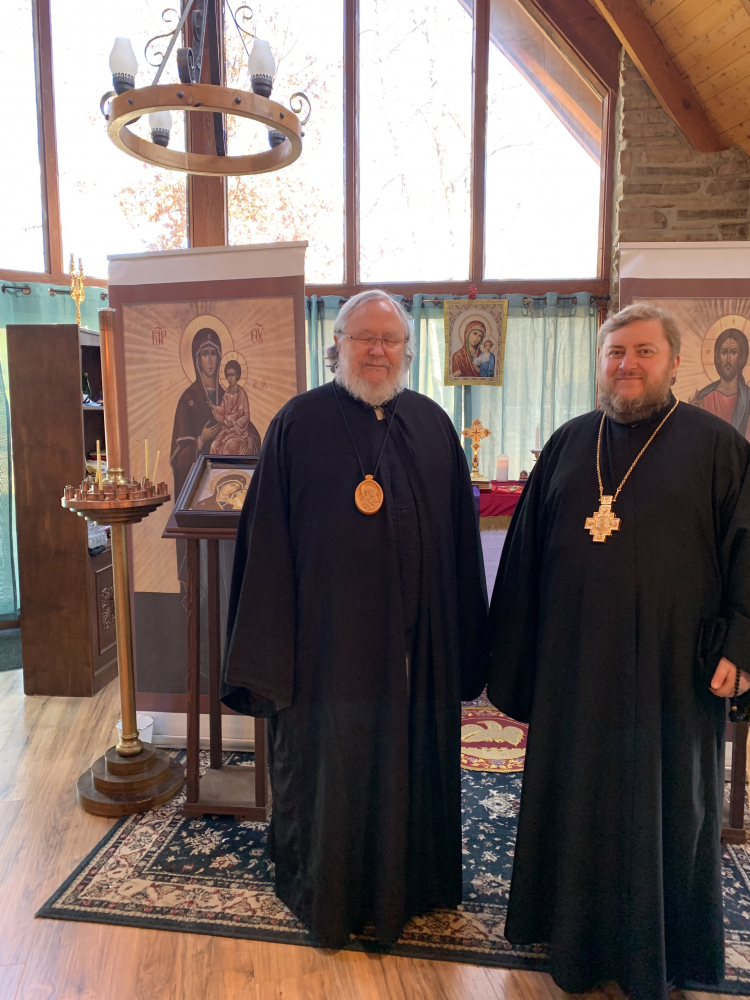 Sa Grâce l'évêque Matthew, accompagné de son assistant, le sous-diacre Nikolai, a visité la Sainte Transfiguration Skete, l'église St Seraphim et le cimetière orthodoxe russe. P